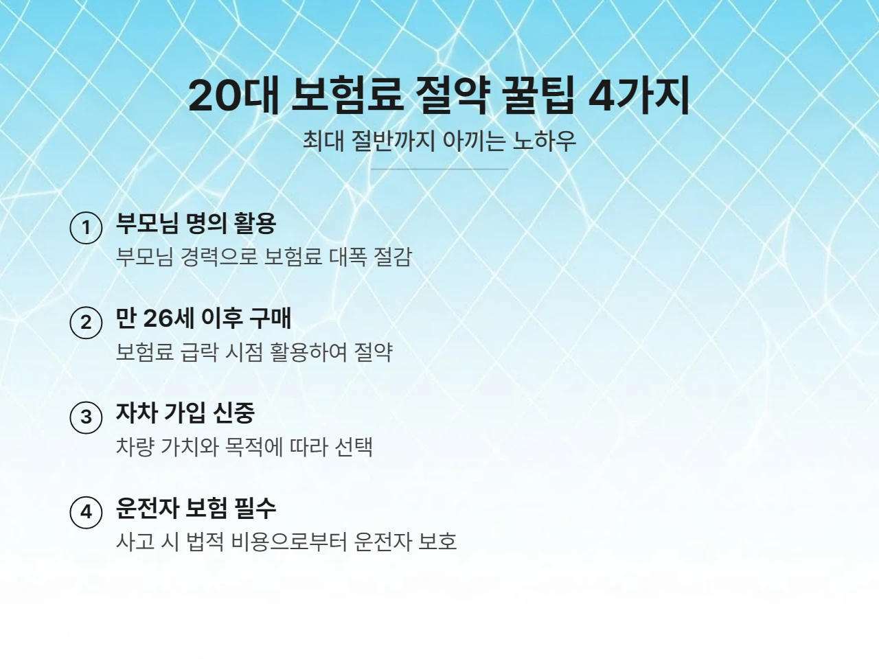결론은 단순해요. 20대 자동차 보험료는 “지금 부담 최소화 + 이후 비용 구조”를 같이 설계하는 게 이득이에요.